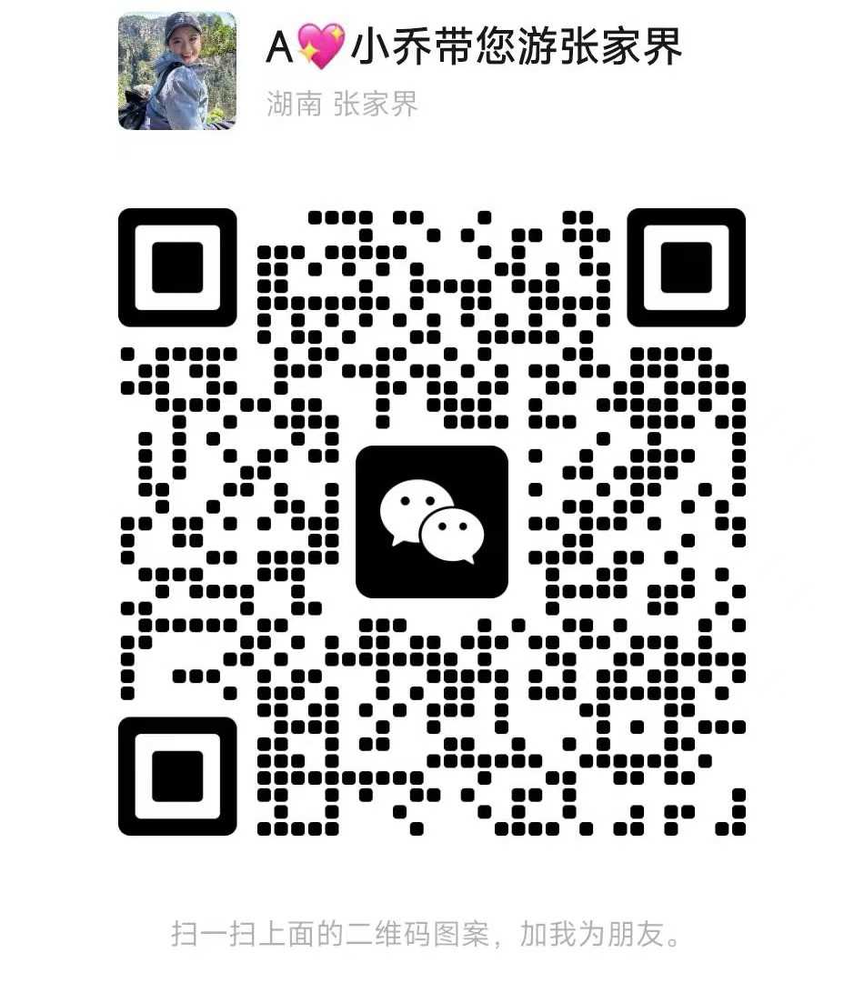 很多朋友去張家界和中國其她城市旅行都想找個靠譜服務好的導遊提前免費咨詢一下,在這裏我給小乔打個小小廣告哦,親身經驗告訴你小乔的服務真的很好,而且價格很實惠。 計劃去張家界遊玩的朋友可以添加小乔的微信WeChat好友免費咨詢一下!